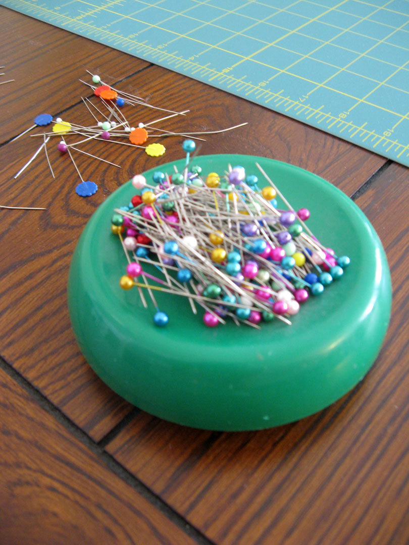 I must confess - I have been using the same pins for a long time. I hate to buy straight pins - they happen to be in the same "I hate to buy" category as toilet paper, laundry soap, tissue.............etc. In fact, I don't think I even bought these - most of these pins are taken from my Mom's stash, and I got some from my Grandma when she gave me her sewing machine. Anyway - I have finally cleaned up the not so straight pins and they are in the garbage - Mom would be proud!