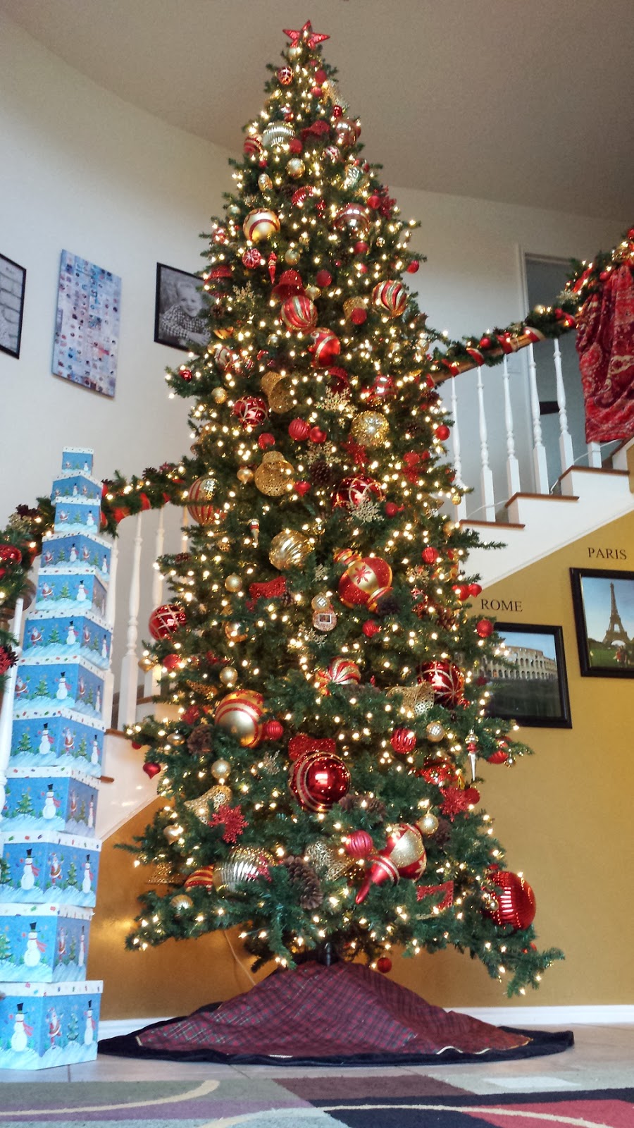This is my tree in our entry, I had so much fun putting it up with my kids. They were with me the whole time and I taught them how to move the ornaments around and make it pretty. I am a little OCD about ornament placement, but I decided that fun memories with my kids are better than having the perfect tree. Still, I think it looks pretty good.