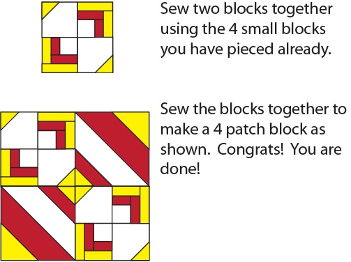 Here is my block in Camille and Bonnie's Happy Go Lucky fabric. I love the yellow, white and red together - pretty sure I am going to make a quilt out of this color combo, I just love it!