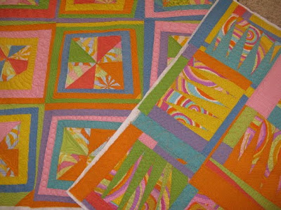 Here's one of the blocks, just some fun funky quilting to go with the bright quilt.
