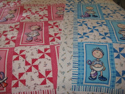 Look at the square blocks, the babies were fussy cut and put in exactly in the middle of the blocks, (I wish I had noticed that in the blue quilt). Kathy is an excellent piecer, the quilts were so straight, and the seams perfect. That makes my job so much easier.