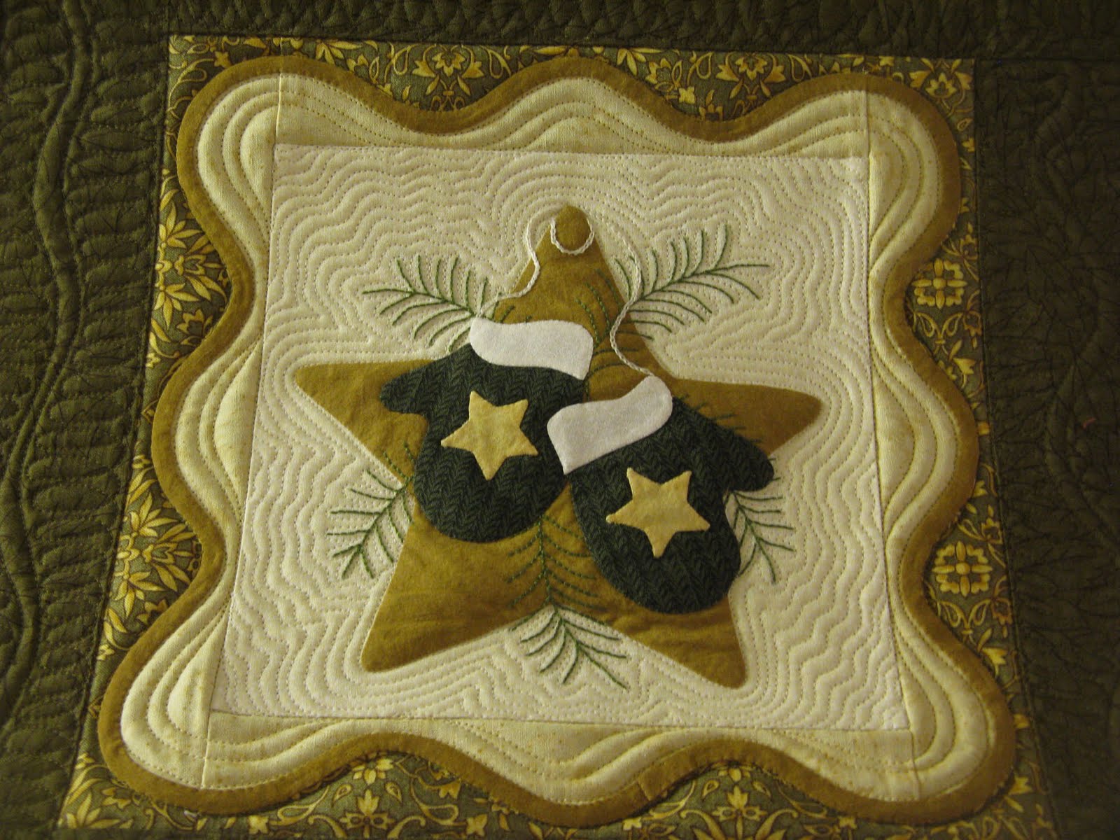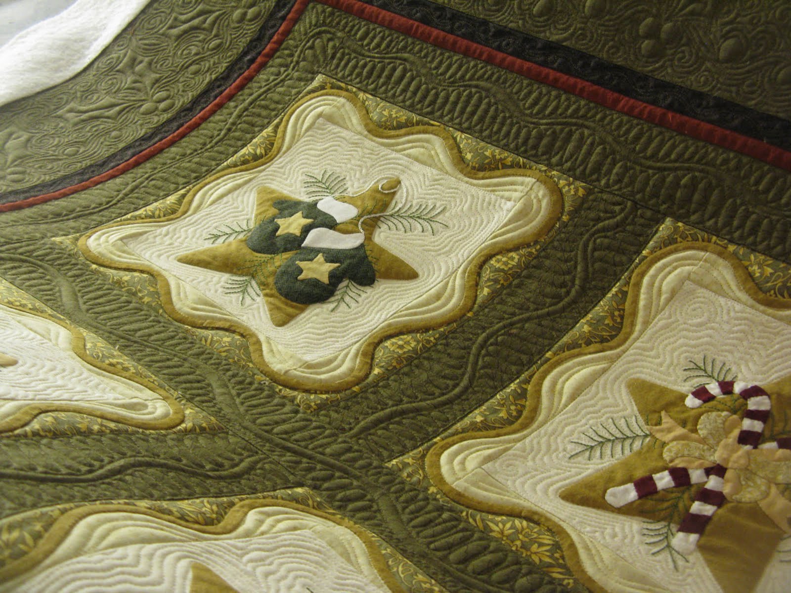 Marlene from Canada did a beautiful job putting this quilt together. I am lucky to be the one to quilt it. She gave me the go ahead to do what I would like on the quilt, but did request holly and berry in the border.