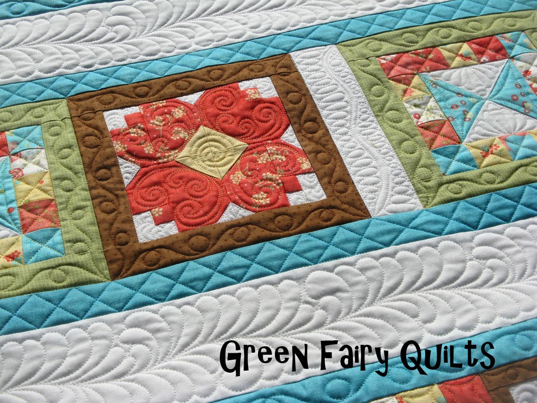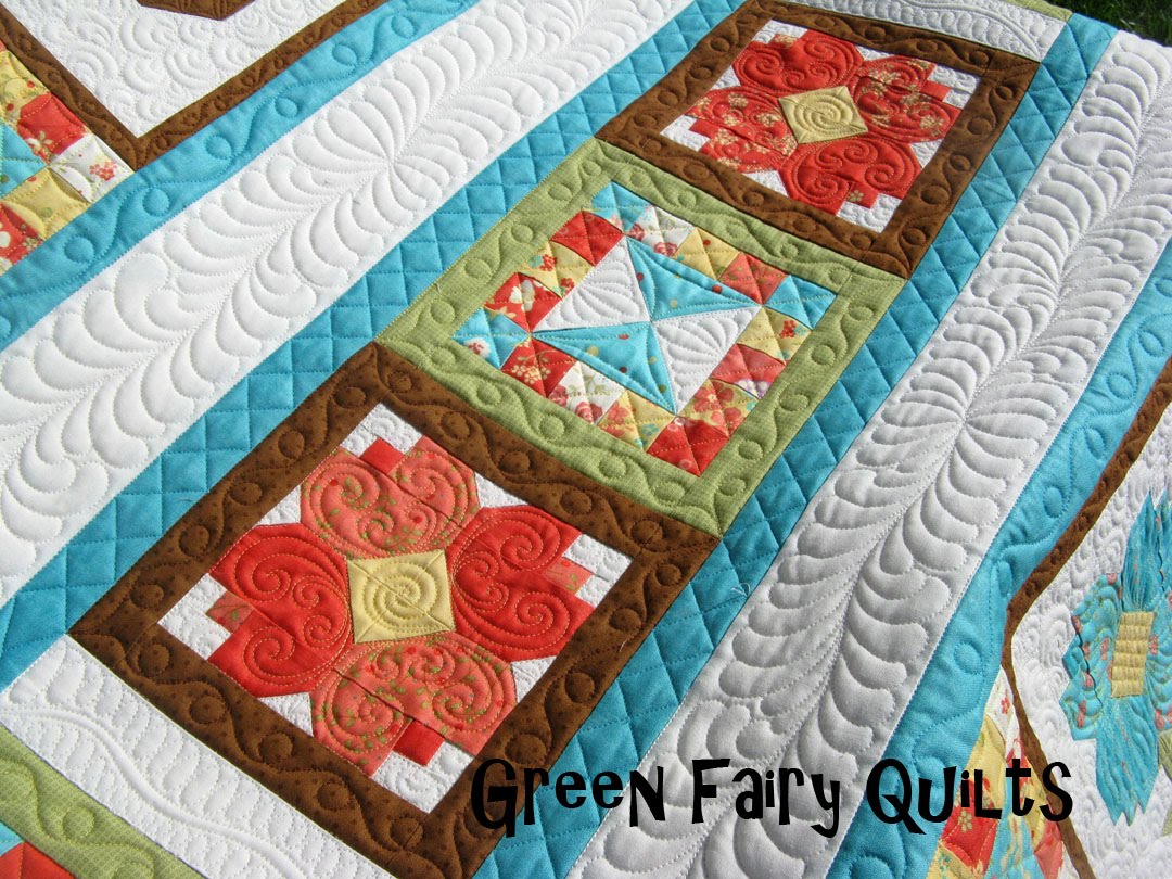 I absolutely love everything about this new pattern. It is by far my favorite pattern right now - I love all my patterns, but I just absolutely love this one. A lot of it has to do with the design - it is so my style - and the fact that I quilted it the way I wanted to. I took some great advice from a lot of you and realized that I am much happier when I allow myself time to work on my designs. I also took some help - thank you Sherri - she is a master piecer and did an excellent job piecing my quilt together.