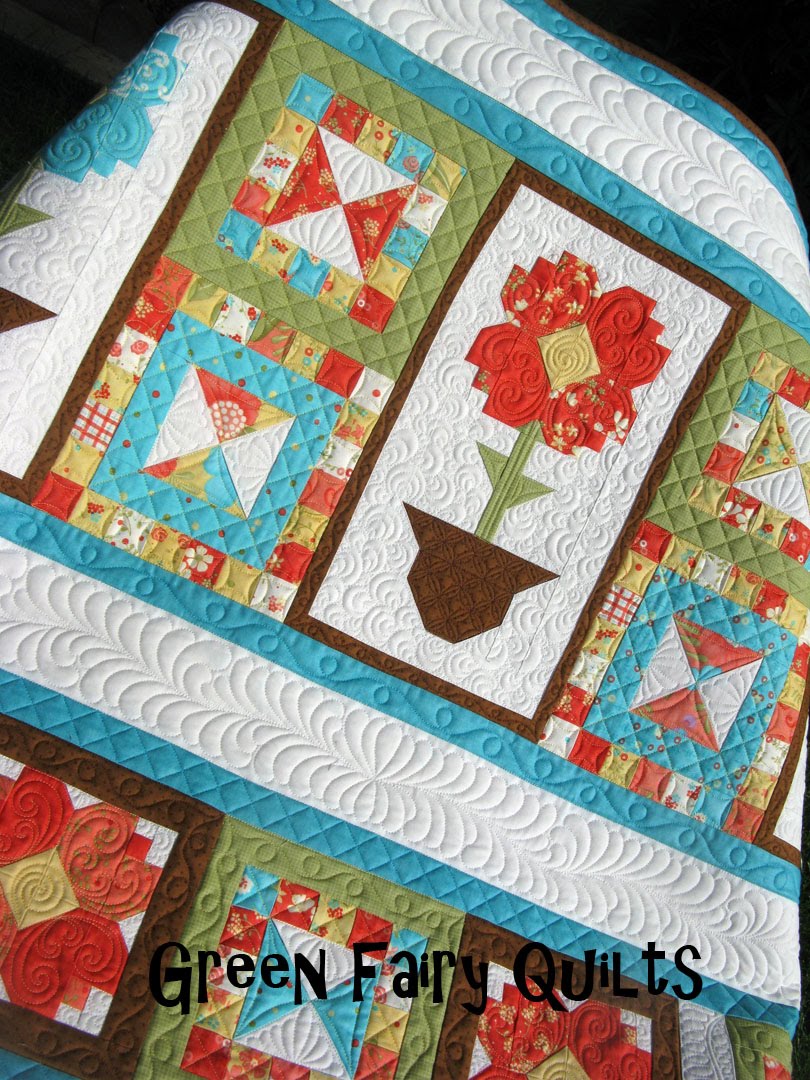 This block was quilted differently from the other flower blocks - it started out as an accident - but I just may make that my signature. Ha ha!