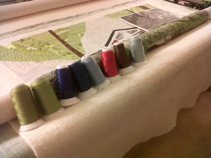 I have to apologize for the picture - my camera is missing!! It was either swiped or I just completely lost it while on vacation last week, so I used my not so cool camera on my phone to take this picture. Anyway, my first art quilt is on the racks - I have the thread picked out and have the permission to have fun with it. I am a little intimidated since this is my first time quilting an art quilt - not to mention it is a very special quilt for the client - but, come Monday when I start this baby I am sure I will know what I am doing - let's hope I do! :-)