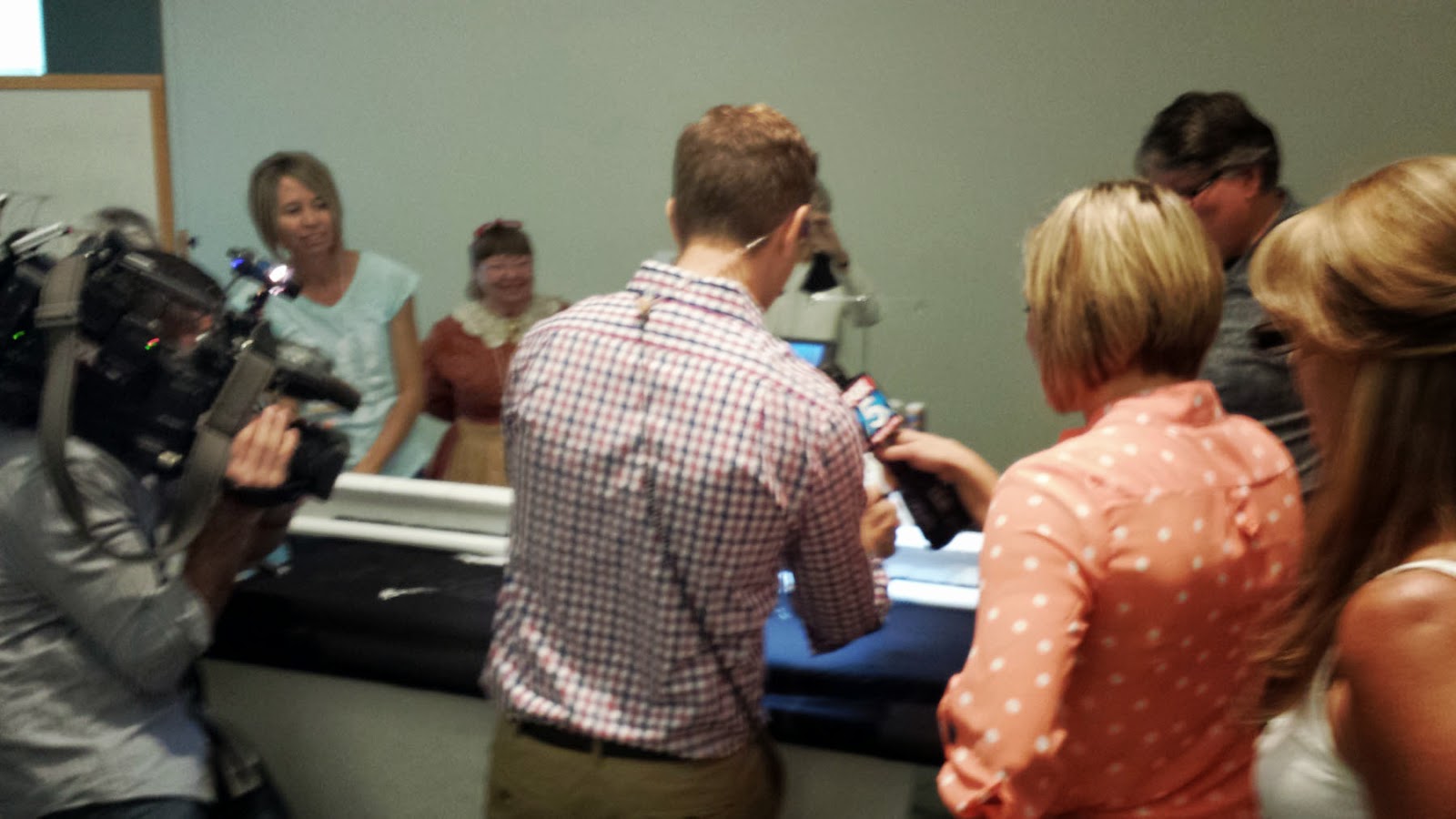 One thing I wasn't prepared for was that the local news station came into my class. You can watch the video here: Warning - the reporter says "blanket" several times. We all know it is a quilt! Seriously. Then, he wanted us to chant "we love quilting." It's all good fun, but you can see how I really feel about chanting when I give two thumbs up and a sarcastic smirk!