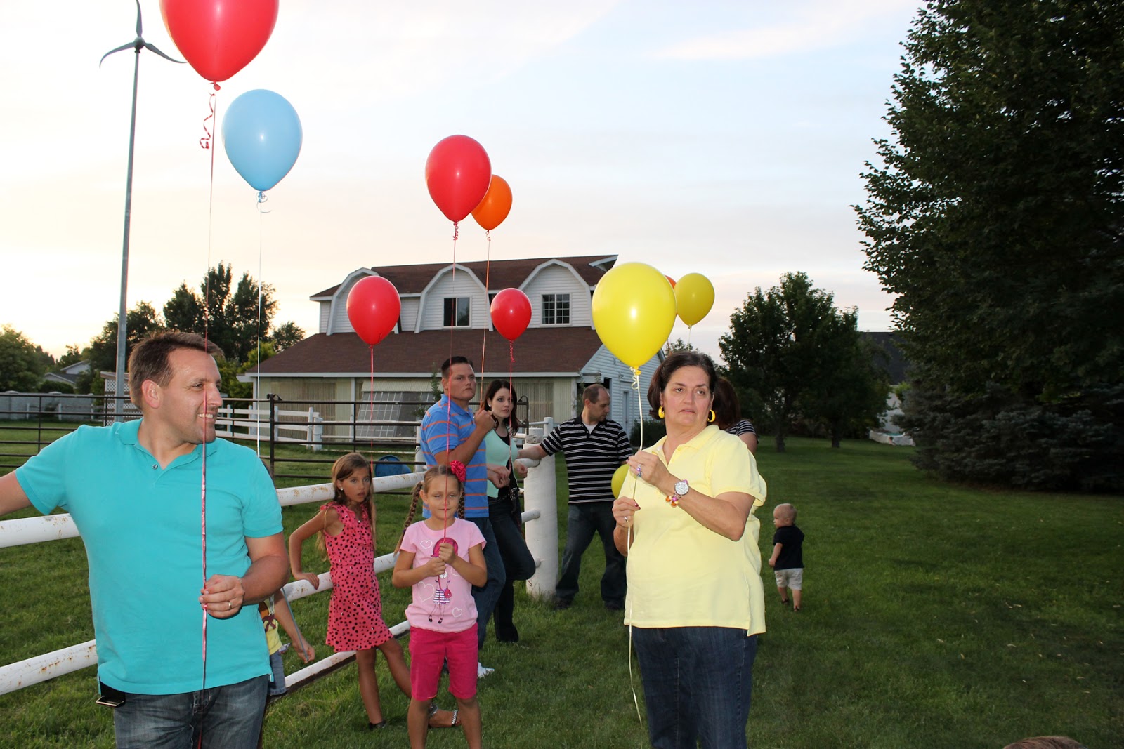 Summer is always crazy, but it is my favorite time of year. The kids are home and I love it when they are home. I had a crazy July with a couple timeline quilts, so the reunion spent last week with my family was such a reward for the stressful couple of weeks I put me and my family through. The above picture was taken on my brother Jed's birthday. He passed away when he was 3 months old (24 years ago) and he was the youngest of 11 children. I remember that day vividly and each year on his birthday my parents get balloons to send up to heaven in remembrance of him. It is a special time for our family and I am so grateful to have my children participate.