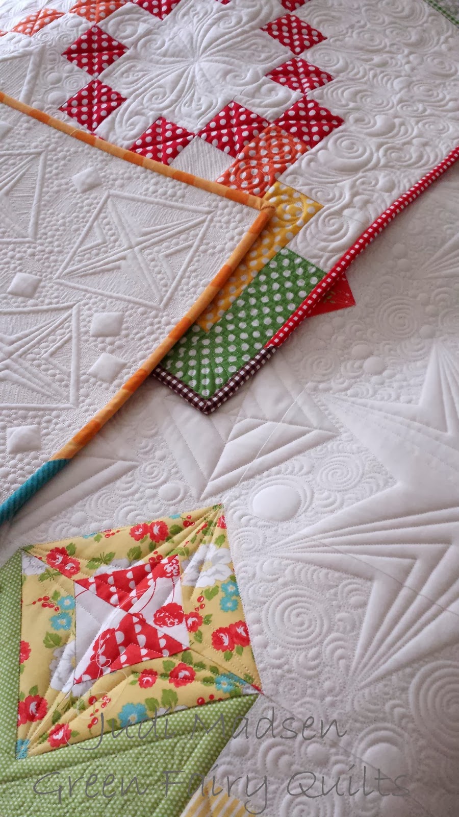 I am currently working on a quilt that I am loving. I can't wait to share it with you. In the meantime I have my quilts (pictured above) to keep me company on Clint's pool table. He isn't a fan of them taking over his area, but until we move he will have to deal with it. Did I tell you we are moving? It is going to be wonderful. I will have my own space, a studio that I could lose myself in and wall space that I will be able to show my quilts on. I can not wait! I will have pictures of my studio soon.