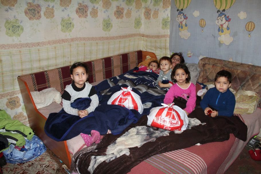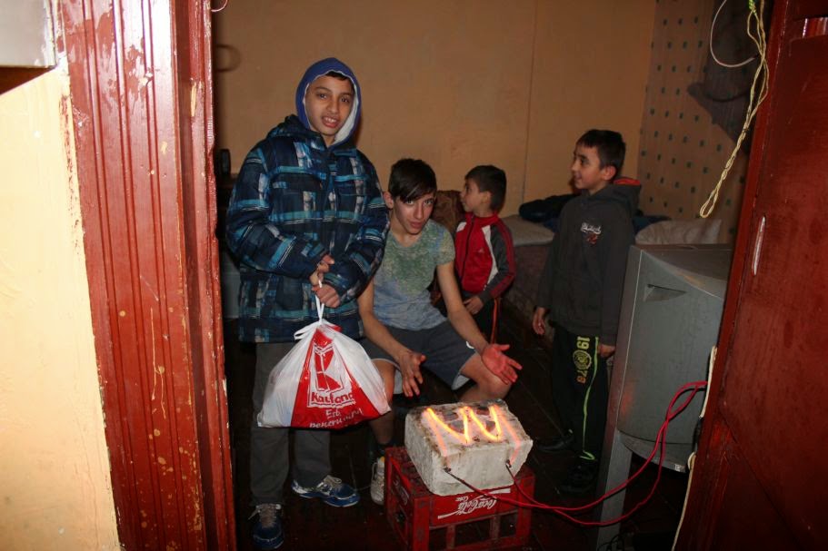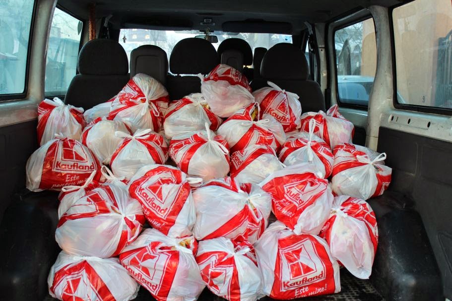 As most of you know, we go to Romania once a year and use your donations to buy food and supplies for street orphans living on the streets of Bucharest. All airfare and hotel expenses are paid for by Green Fairy Quilts, we always use 100% of your donations in Bucharest for necessary supplies. Clint decided to take his younger brother with him for our trip in February. We had the airfare tickets purchased and hotels booked, but as the time approached for Clint to leave, he began having a very uneasy feeling about the trip. About a week before departure, the US government issued a travel warning for all Americans traveling to Europe, as threats against foreigners seemed to be rising in the area. Clint prayed for guidance and was so sick to his stomach about leaving, he made the difficult decision to cancel the trip. However, we were successfully able to transfer your donations to our highly trusted contact in Bucharest, Gica. Gica and his daughter were able to buy large amounts of food and deliver them to street orphans and families living on the cold streets of Bucharest. We have many pictures from Gica, and we'd like to share some of them with you below. We will continue to accept your generous donations and will continue planning on an annual trip to Romania.